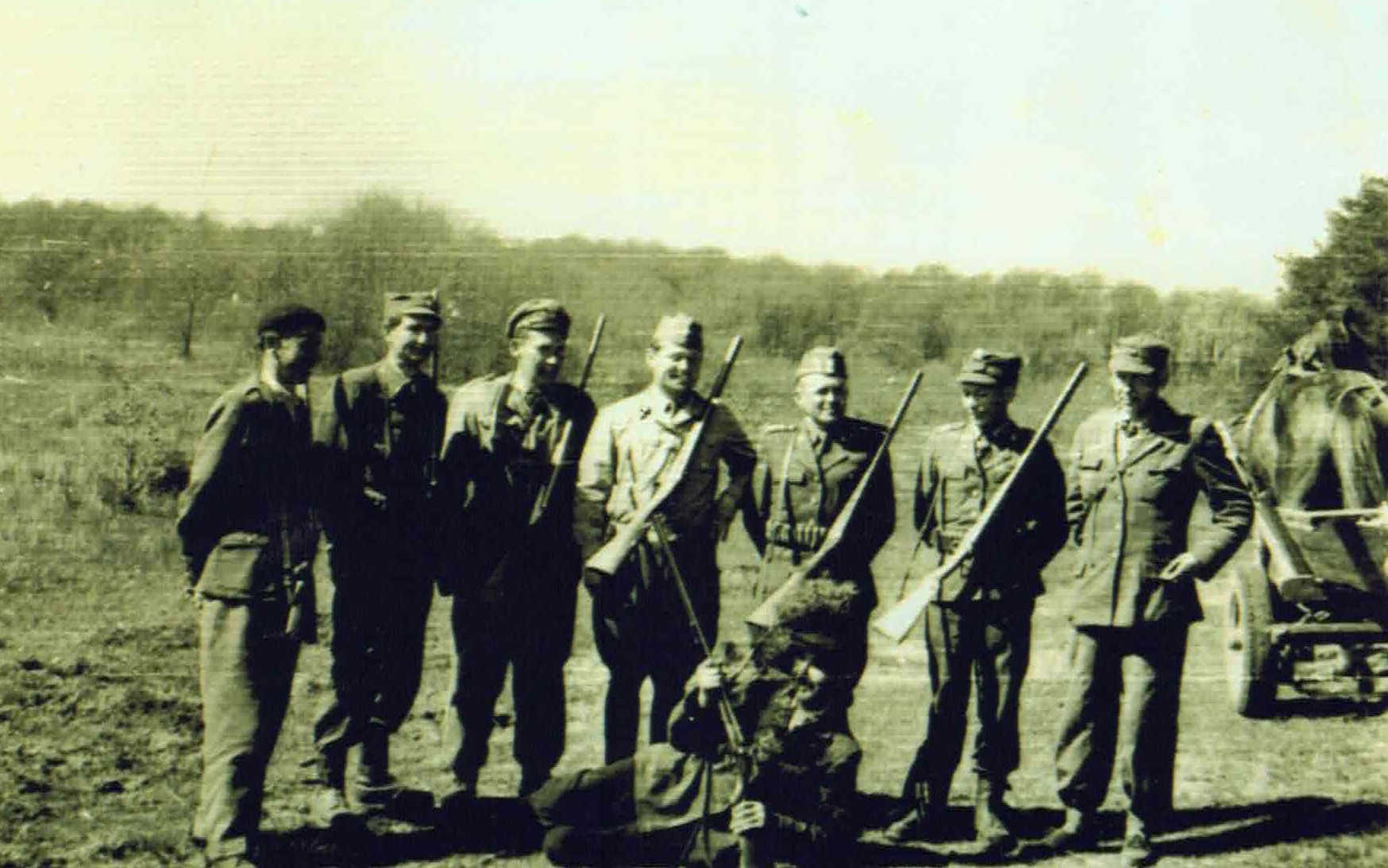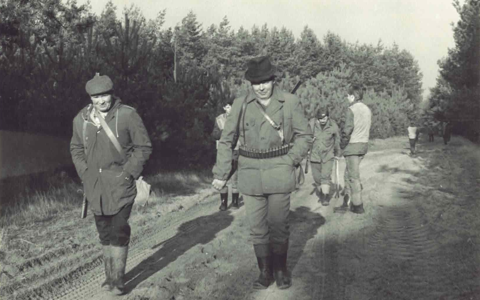 Po zawierusze wojennej w leśnym garnizonie wojskowym w Stawach nie brakowało entuzjastów łowiectwa, do których należeli m. in.: mjr Nikifor Gusiew (dowódca garnizonu), kpt. Piotr Giziński, por. Józef Łyczakowski, por. lek. Franciszek Wieczorek, chor. Kazimierz Ignatowicz, plut. Ludwik Ciechanowicz, plut. Stefan Kluska czy kpr. Kazimierz Szarek. Postanowili oni skończyć z prowadzeniem „dzikich” polowań w pobliskich lasach i na polach wsi Brzeziny, Julin, Karasiówka i Swaty, a przyjąć zorganizowaną formę myślistwa. Utworzyli więc Wojskowe Koło Łowieckie „SOKÓŁ” przy jednostce wojskowej nr 2184 w Stawach, wybierając jednocześnie pierwszy Zarząd Koła, w składzie: przewodniczący – kpt. Piotr Giziński, łowczy – chor. Kazimierz Ignatowicz i sekretarz – plut. Ludwik Ciechanowicz.
